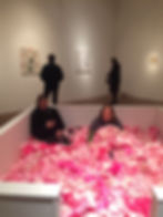 “Affection” was at several different galleries and I noticed that almost everyone who viewed the work wanted to touch the ruffles. From this experience, I designed "ruffle Pit", the installation that is more interactive and tactile for the audience. “Ruffle Pit” is a structure similar to a “ball pit” like those found at carnivals and amusement centers. Instead of plastic hollow balls, it is filled with strands of pink ruffles. The ruffles that were once wound up on the wall in a circular shape now create a deep, piled mass on the interior floor space of a contained environment that are accessible to the audience to move through and explore.